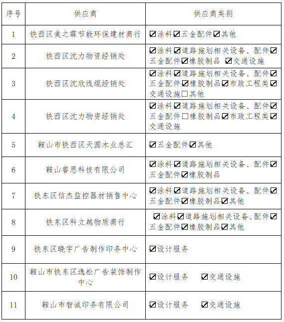 供應(yīng)商入庫名單公告2